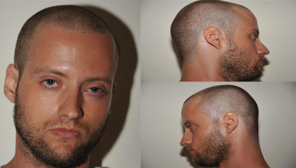 Στην παρακάτω φωτογραφία βλέπουμε τον ΕΛΛΗΝΑ που συνέλαβαν με εντελώς ακάλυπτα τα χαρακτηριστικά ενώ φορούν κουκούλα , αλεξίσφαιρο οι αστυνομικοί συνοδοί του !!!
